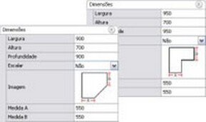 Leave the modules with their measurements In the Promob Plus, all modulation is open, that is, it can have its measures of width, height and depth changed. Moreover, one can define the standard measures of the libraries or change the constructive model of the objects. | ||