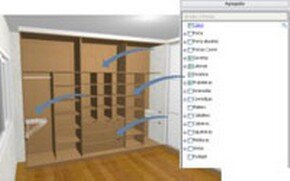 | Configure the internal parts of the modules With an already established concept, the Aggregates feature allows the user to configure the internal parts of the modules simply and efficiently. Just go selecting the items in a predefined list for the system to insert the shelves, partitions, drawers, etc. Inside the module. | ||